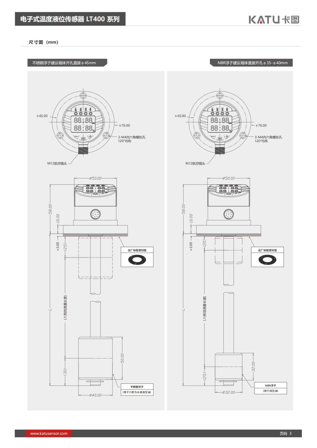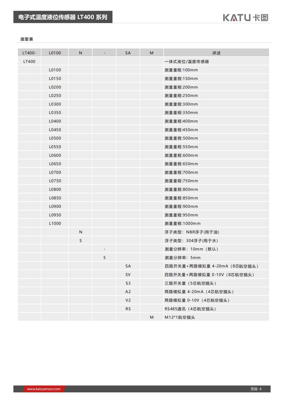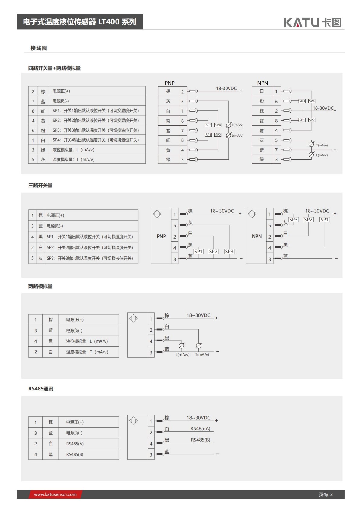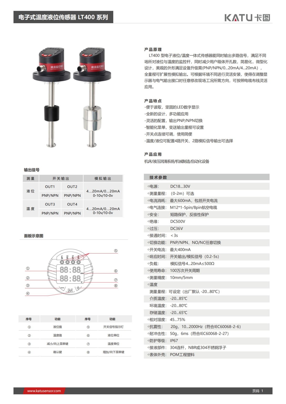 LT400型電子液位/溫度一體式傳感器能同時輸出多路信號,滿足不同場所對液位與溫度的監控桿,同時減少用戶箱體開孔數,簡易化,微型化設計,美觀的外形滿足設備升級需(PNP/NPN/0...20mA/...20mA),全量程可擴展性模擬輸出。可根據環境不同進行靈活安裝,使得在調整顯示器與電氣輸出接口時任意修改現場工況所需方向,可按照電纜布線靈活應用。