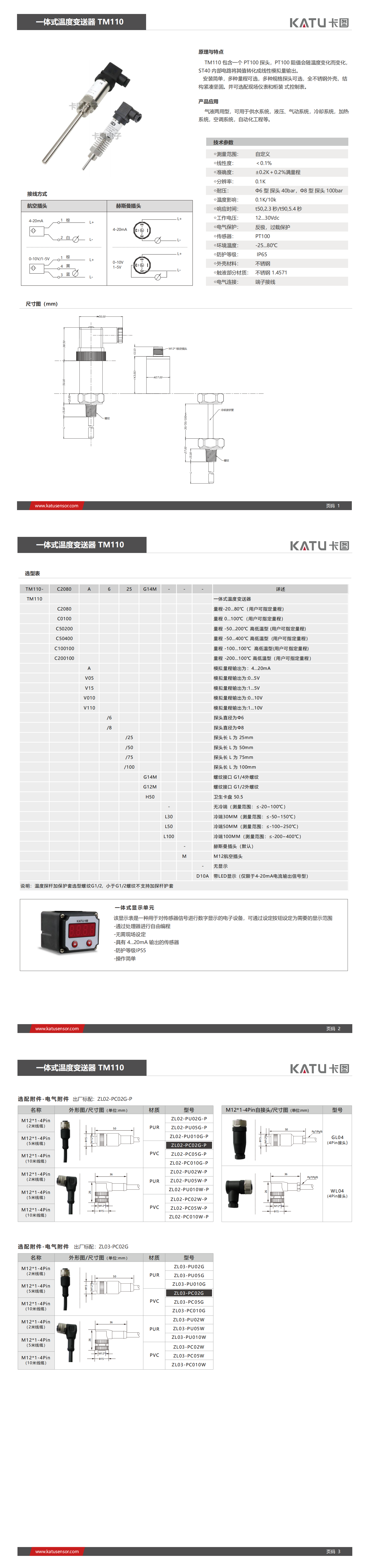 TM110 包含一個 PT100 探頭,PT100 阻值會隨溫度變化而變化ST40 內部電路將其值轉化成線性模擬量輸出。